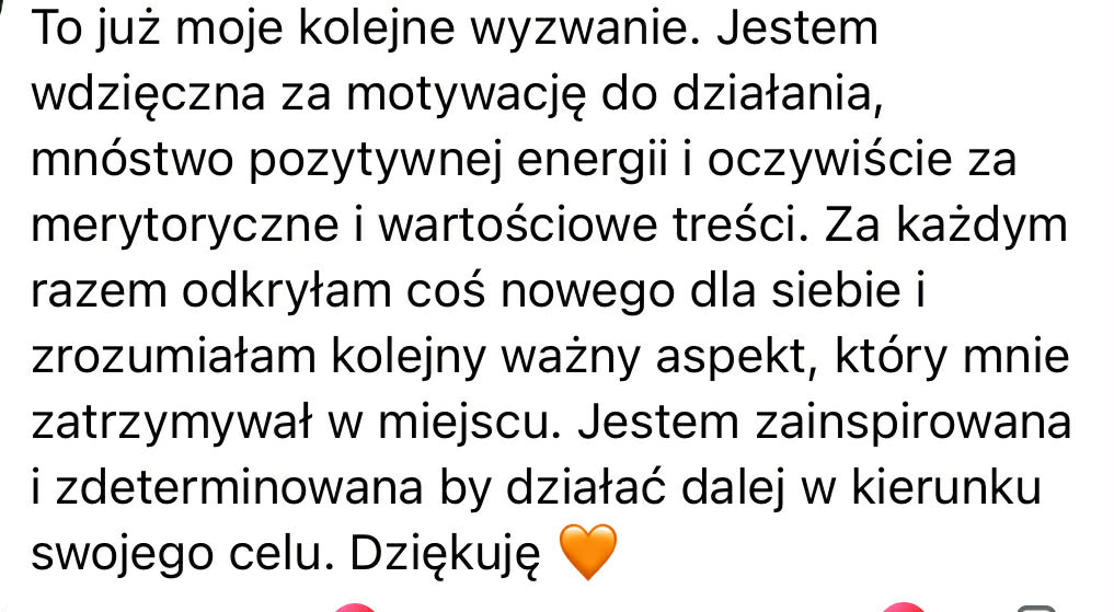 Miotałam się, próbowałam różnych dróg, prawie się poddałam, a moja wiara w siebie stopniowo gasła. Ta długa i kręta droga okazała się jednak bezcenna. Dziś wiem, że brakowało mi wtedy fundamentu, bez którego nie mogłam pójść dalej. To właśnie ta droga nauczyła mnie, czym naprawdę jest ten fundament — jak stać się osobą, która działa w zgodzie ze sobą i osiąga realne rezultaty. Jak pozwolić sobie na więcej.