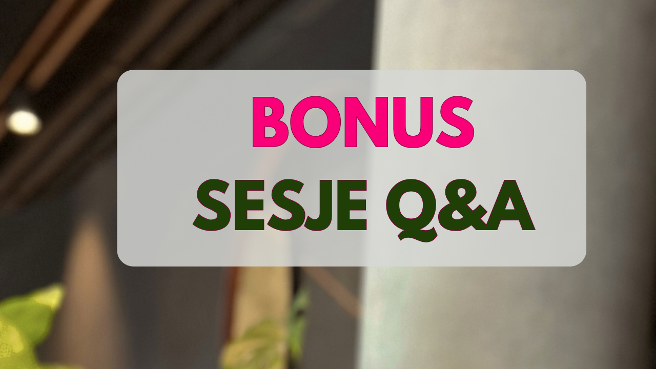 Na zamkniętych sesjach Zoom, podczas których będziesz mogła zadać mi pytania dotyczące Twojego biznesu. Pomogę Ci wprowadzić zmiany, które pozwolą Ci naprawdę ruszyć z miejsca i zacząć doświadczać biznesu oraz życia, o jakim marzysz.