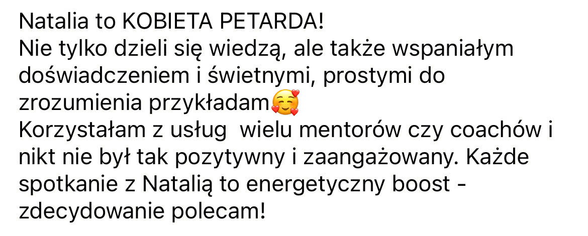 Bo prawdziwa moc Twojego biznesu rodzi się wtedy, gdy łączysz misję swojego serca z jasną strategią, strukturą działań i tożsamością CEO. Wtedy każdy Twój ruch ma sens, biznes rośnie, a Ty czujesz radość i spełnienie w tym, co tworzysz.